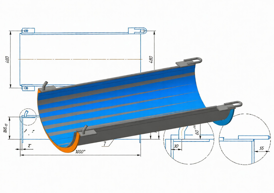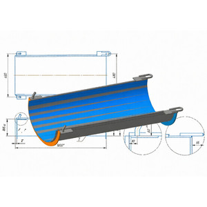 Дополнительный лоток СБ-172-1.01.03.500 автобетоносмесителя предназначен для увеличения дальности подачи бетона. Он имеет петли для крепления на разгрузочный лоток. Перевозится в стандартном месте крепления лотка на крыле миксера.