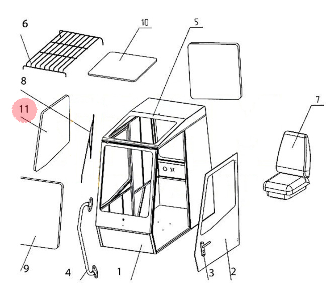 Стекло двери (боковое) КС 3579.58.014К кабины автокрана Машека КС-3579, КС-45729, КС-55727 купить в Минске, запчасти к автокранам производства ОАО "МАЗ"